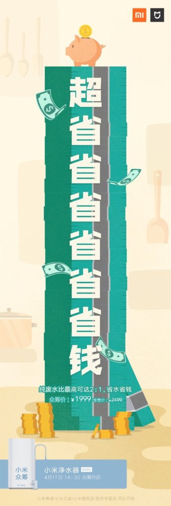 Xiaomi’s MIJIA sub-brand has announced via its official Weibo page that it would be launching a new water purifier under the Youpin crowdfunding platform. The product will be launched on April 17.