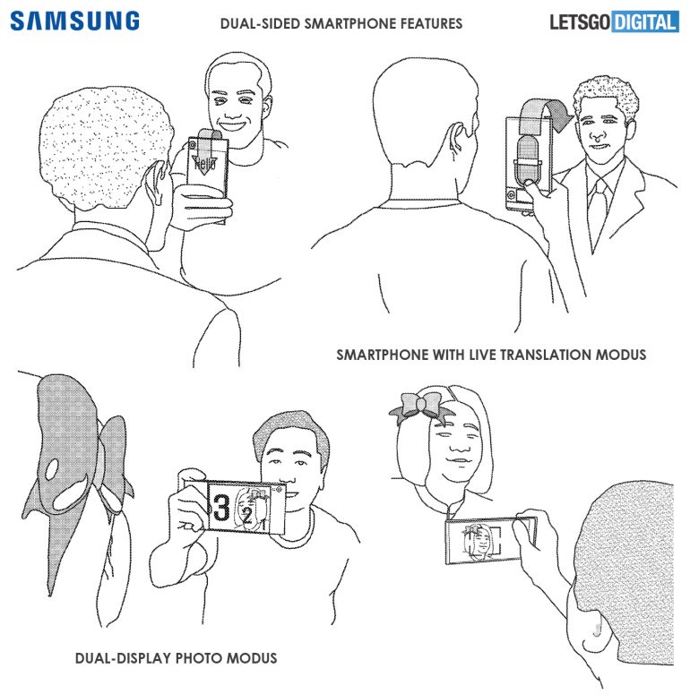 Such a display may be useful for several usage patterns, especially for photography. First of all, it would allow people to use the main cameras as front cameras too in order to shoot awesome selfies. According to the attached images, the dual-sided wraparound display can even be used for live translation. And thanks to the dual side the user could be able to interact with different applications on each side, such as writing messages while having the call screen open on the other side.