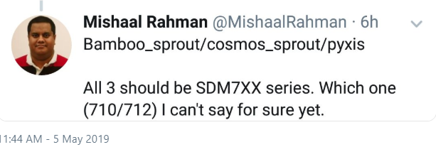 Rahman is unsure whether the “bamboo_sprout”, “cosmos_sprout” and “pyxis” are powered by Snapdragon 710 or 712 mobile platform. Some rumors had claimed that the Mi A3 series could be featuring Snapdragon 730 mobile platform. However, it now seems these devices could be featuring SD710 or SD712. He did not share any other information on the specs of the Mi A3 series.