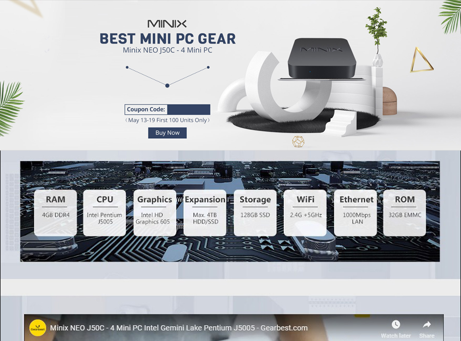 Touted as one of China’s best online stores for electronic items, Gearbest has launched a mini PC special promotion, doling out great discounts on a wide selection of mini PCs and mini PC gears. As part of its promotion, Gearbest will be offering the Minix NEO J50C – 4 Mini PC at a reduced price.