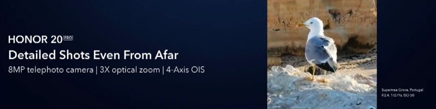 The Honor 20 Pro has a 16MP ultra-wide angle camera with a 117° FOV. It also works with AIS Super Night Mode for super-wide angle low-light images. The telephoto camera, on the other hand, provides a 3x optical zoom which lets you get closer to your object without losing details. The Honor 20 Pro also supports up to 30x digital zoom!