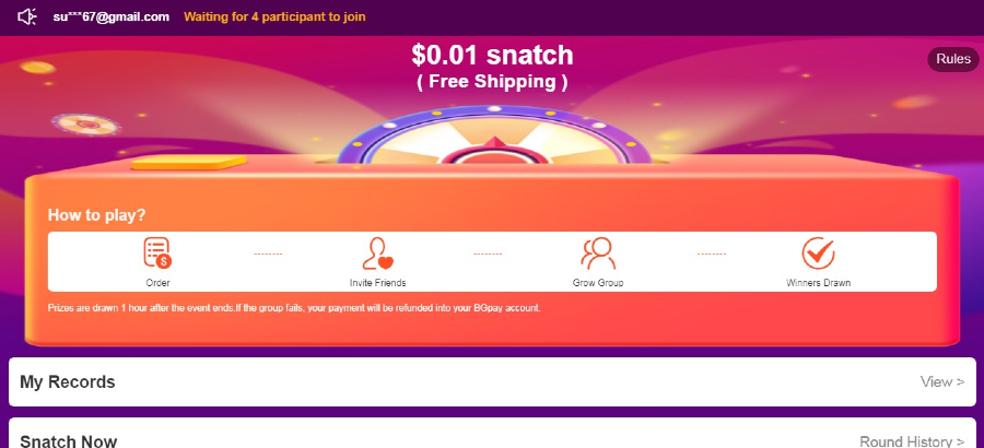 There is a slew of other things that you need to bear in mind before participating in this $0.01 snatch. First off, you need the app to create and join a team. You can create or join only one group. The stock of products is limited so if you are unable to purchase due to insufficient stock, your order will be refunded to the BGpay account.