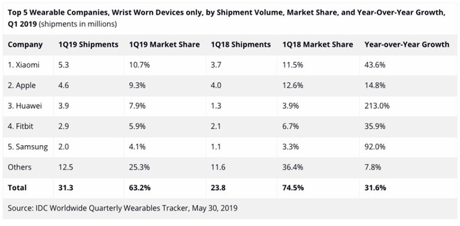 Latest research data released by market research firm IDC shows that Apple continues its dominance of the wearable market. However, the gap continues to shrink as Samsung and Huawei rapidly mount pressure on the US giant with impressive shipments.