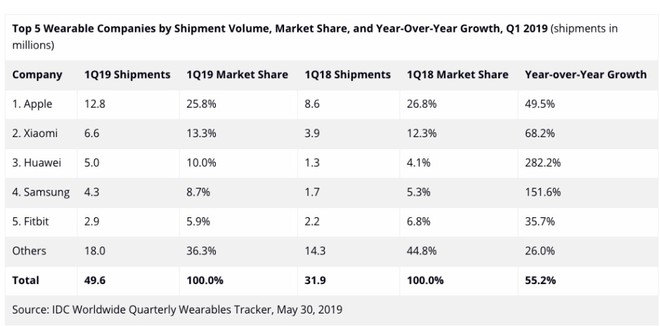 According to the report, Samsung and Huawei have boosted their figures by a significantly higher degree than Apple during Q1, 2019 in the wearable market. Embattled Chinese giant Huawei dominated the industry in terms of growth and was able to triple its sales and thus, double its market share compared to Q1 2018. Huawei recorded a massive growth of 282.2%, shipping an estimated 5 million units of wearable devices globally. On the other and, Apple shipped 12.8 million and Xiaomi 6.6 million units. Samsung shipped an estimated 4.3 million units and Fitbit completed the top 5 with a total shipment of 2.9 million wearables.