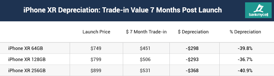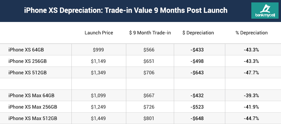 The iPhone XS/XR also saw some significant depreciation in value, with the iPhone XR (256GB) having the biggest depreciation of -$368 among the three available storage variants.