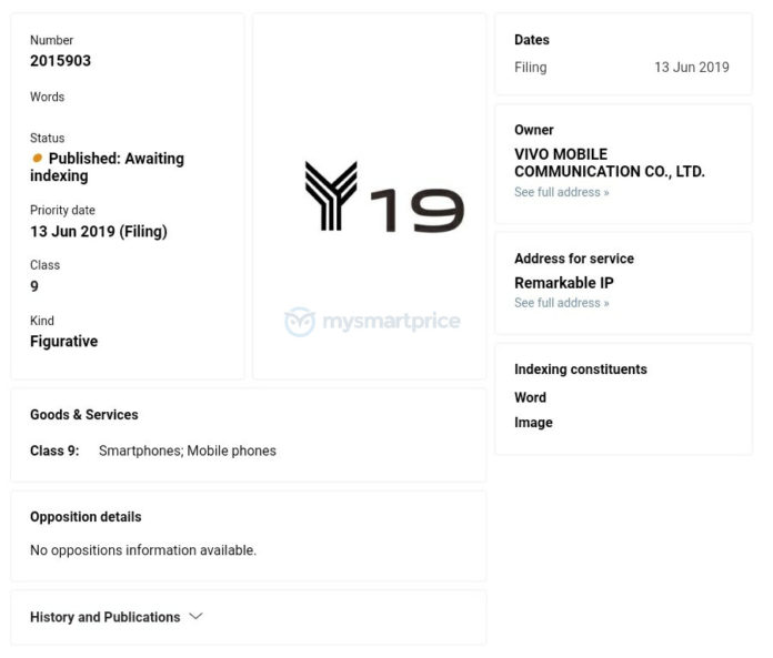 The Vivo Y19 name that has been trademarked with WIPO sounds like a successor for the Vivo Y17 that was unveiled in India recently. In the past few months, Vivo has launched Y-series smartphones like Y12, Y15 and Y17 with similar specs with slight differences in their specs. Hence, the upcoming Y19 phone may borrow many of its specs from the Y17 phone.