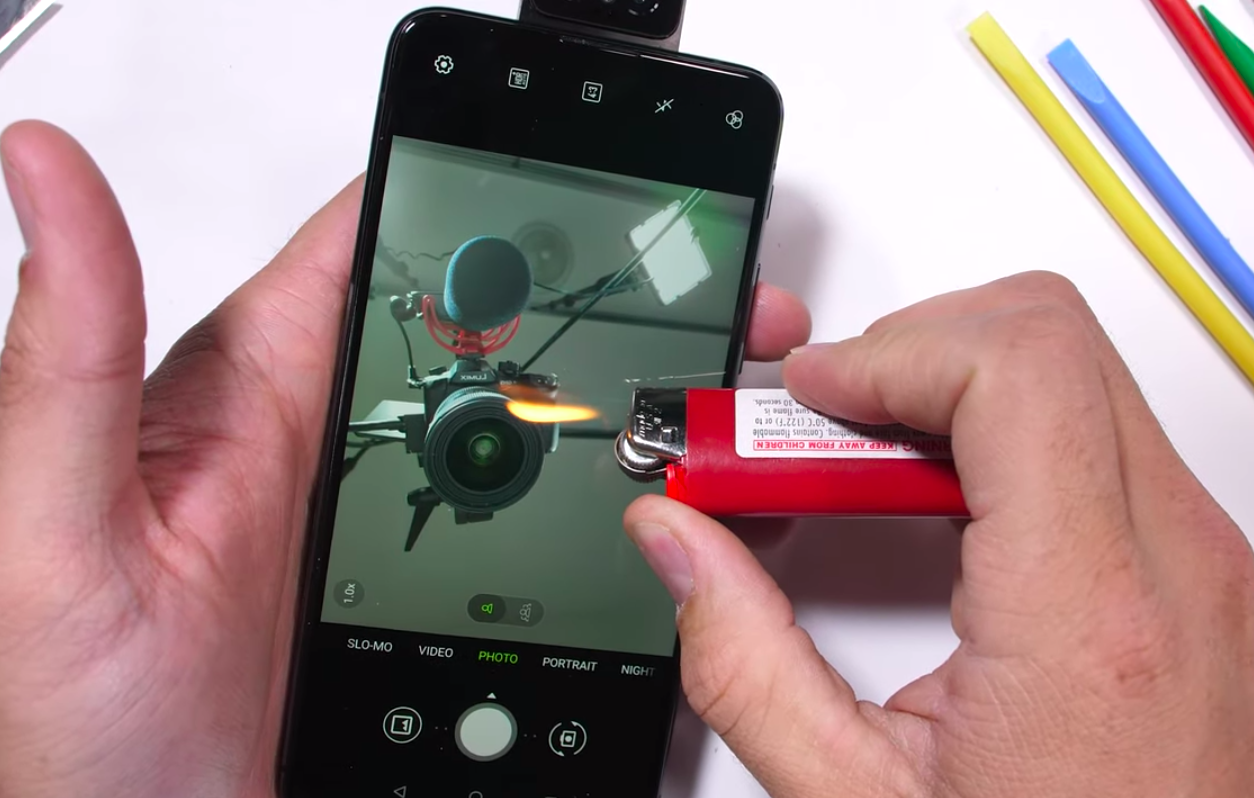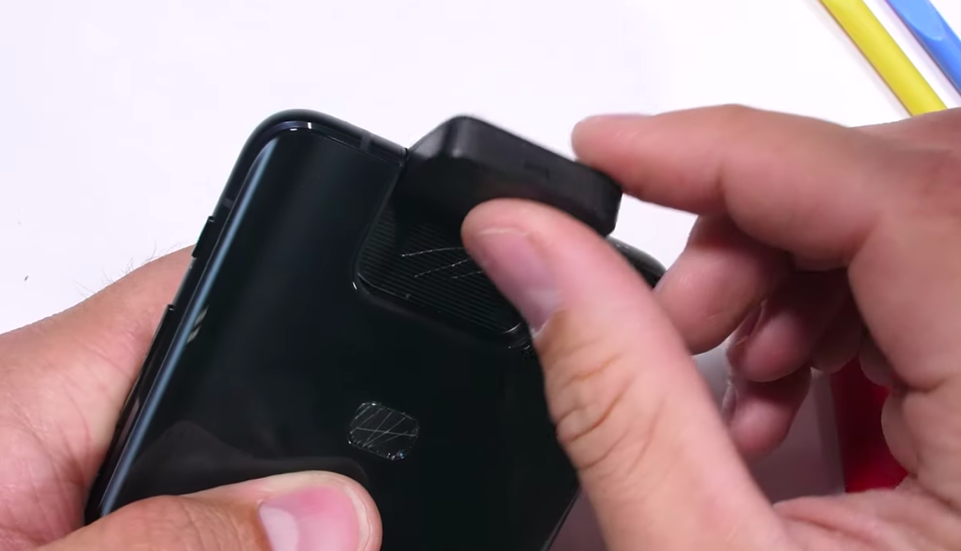 However, the real test was always going to be the phone’s flip camera. JerryRigEverything tried to twist the camera setup, stop it in between retraction, scratch it, and even banged it on the desk a couple of times. None of these actions seemed to have affected the phone’s camera setup. However, it is worth noting that the motor that drives the flip camera isn’t very powerful, so you can easily stop it mid-way with your hand or any other object. You’ll soon get a notification that the camera setup is obstructed and it goes away once you allow it to move freely.