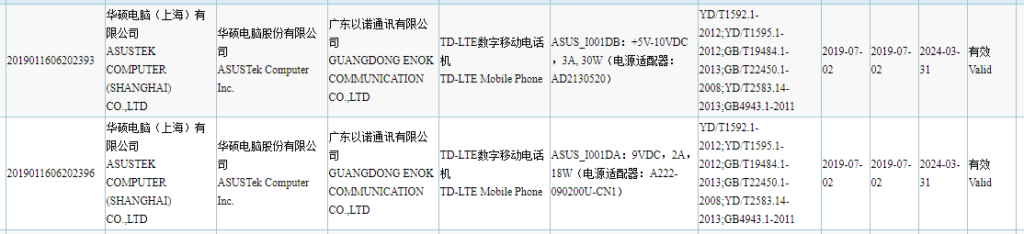 The database of China’s 3C certification has new listings for ASUS_I001DA and ASUS_I001DB variants for an upcoming ASUS phone. The listings reveal that the ASUS_I001DA handset will be available with a charger that will support for 30W rapid charging whereas the ASUS_I001DB will be arriving with an 18W fast charger. The support for 30W fast charging suggests that it could be the ROG Phone 2. However, the Wi-Fi certifications tell a different thing. The Wi-Fi Alliance listings of ASUS_I001D and ASUS_I001DD have revealed that it runs on Android 9 Pie OS and Wi-Fi 802.11 a/b/g/n which suggests that it could be a mid-range device.