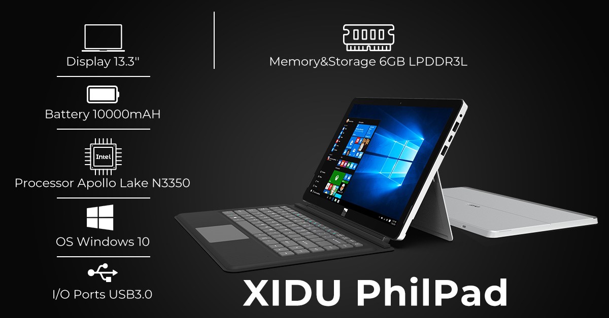 The PhilPad features a golden ratio 2K 13.3″ display with touch support. The well-designed kickstand can be adjusted to multi-angles while the ultra-thin detachable keyboard allows you to turn it into a laptop in seconds. It comes with the Intel Celeron N3350 CPU and sports 6GB of RAM, and 64GB of eMMC storage that can be expanded to 256GB more. Unlike other products in the market, it comes with a metal body that satisfies the taste of its owners. It’s super light at just 1kg including the huge 10000mAh battery and ultra-thin at 0.4 inches. It offers 1 x USB Type-C, 2 x USB 3.0, 1 x Microphone Jack, 1 x MicroSD card slot, and Dual-band 2.4GHz/5.0GHz WiFi.