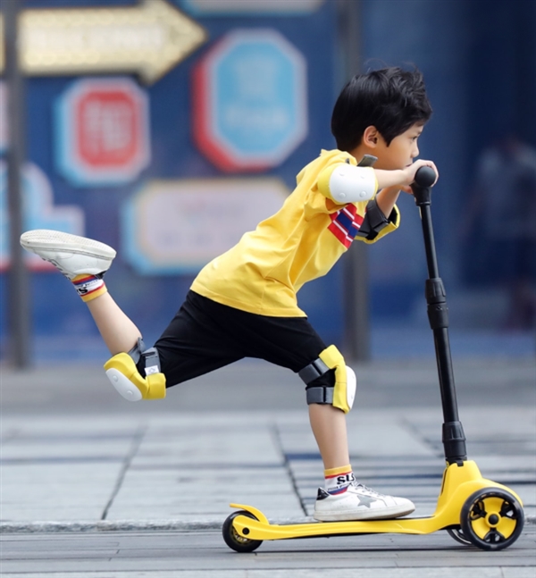 The scooter comes with five-fold safety design and a three-speed adjustment. It also has a steering component at the centre of gravity. The scooter is said to adopt a widened track design in which there are two front wheels. The distance between the two wheels is up to 24cm, giving it more stability when sliding. This reduces the risk of falling. The wheels are 5cm wide with a strong grip. The width also ensures better stability.