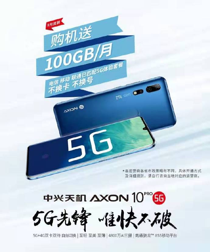 ZTE Axon 10 Pro 5G is the first 5G smartphone on sale in China. The phone is already available in the stores of China Telecom and will soon be on sale via China Mobile and China Unicom stores as well. In order to speed up the adoption of 5G in the market, ZTE, in partnership with the three carriers in China is offering an amazing deal to Axon 10 Pro 5G customers. Anyone who purchases the phone will get 100GB of 4G /5G data per month for free.