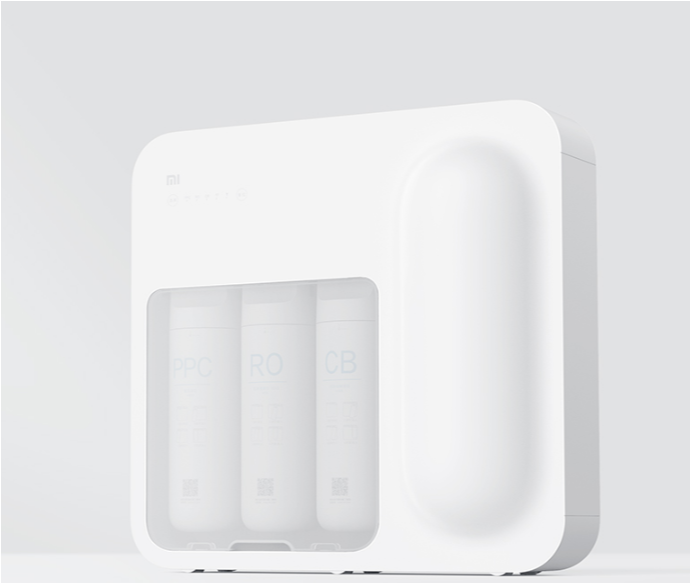 The Xiaomi Mi Lentils Water Purifier uses reverse osmosis (RO) filtration technology with four different purification chambers. The water travels through high-density folding PP cotton in the first chamber and moves to the second chamber containing activated carbon rod. The third chamber contains a reverse osmosis filter and then another activated carbon rod chamber. The water that comes out is of packaging-grade drinking water standards.