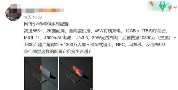 The leak does not reveal the display size of the Xiaomi Mi MIX 4, but states that it will be featuring a curved screen that will carry support for 2K resolution. The Snapdragon 855+ that includes 2.96GHz octa-core processor will be powering the smartphone. It will come with 12 GB of RAM and a large storage of 1 TB. It is said to carry support for UFS 3.0 storage.