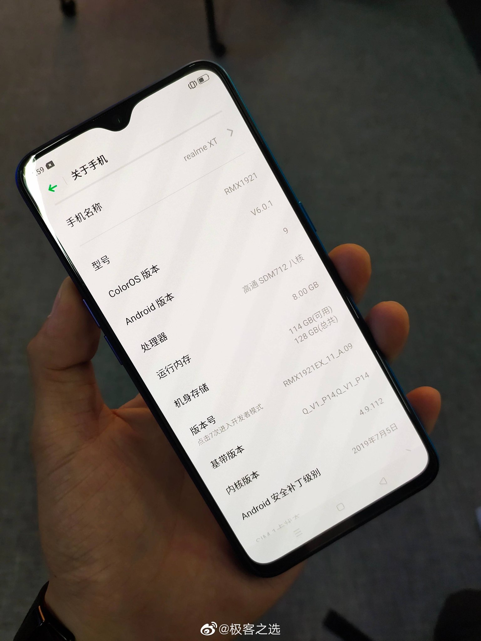 One of the leaked pictures is that of the “About phone” page of the phone showing the specifications. As you may know already, the Realme XT will be powered by a Snapdragon 712 chipset and will run on Color OS 6 based on Android Pie. The device also comes with 8GB of RAM and 128GB of internal storage but there may be other versions.