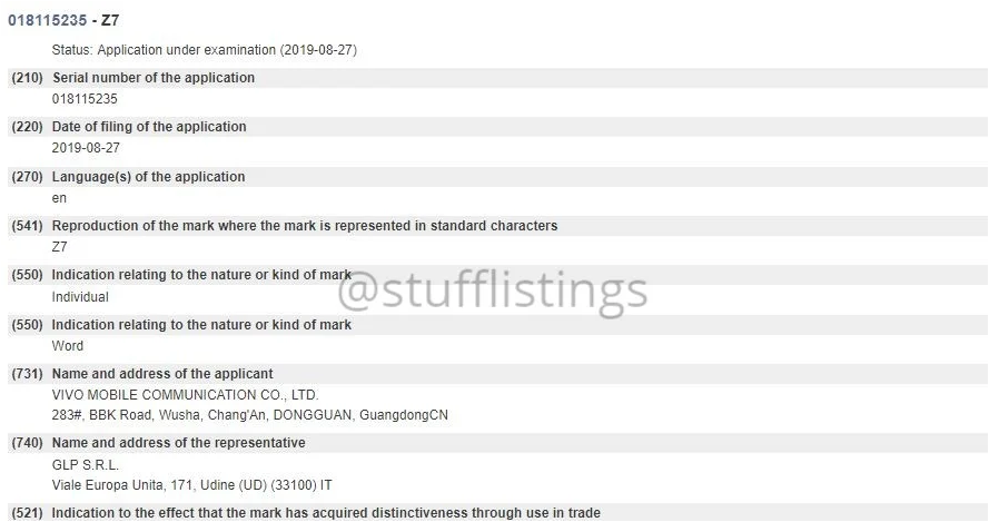 Chinese smartphone manufacturer Vivo recently took the wraps off the Vivo Z5 packing a Snapdragon 712 chipset. The company may drop the Z7 and Z9 sometime in the near future as it has filed for trademarks for both names.