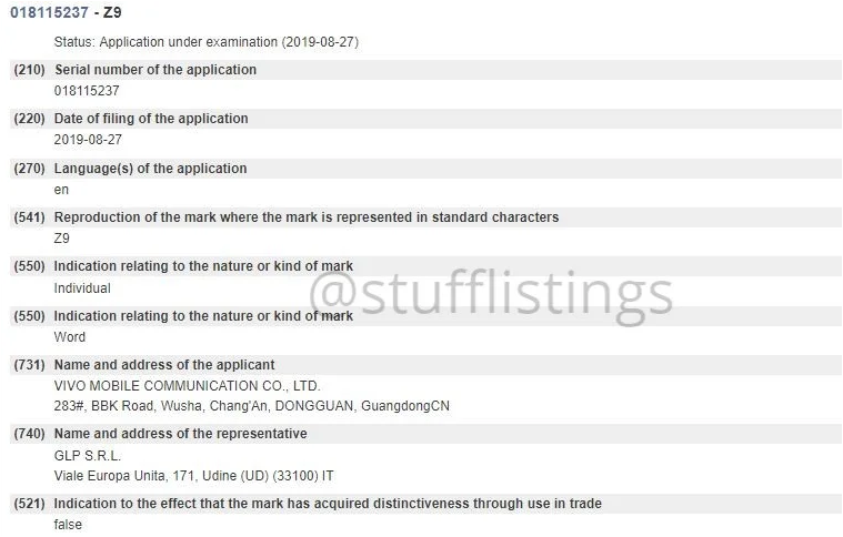 We can’t say when they will be launched or if both models will be launched at the same time but a trademark application is an indication that Vivo will use the names for successive models. At the moment, nothing is known about the models but a source claims the Z9 may feature a quad-camera setup with the primary sensor likely being a 64MP one. Both models are expected to pack an AMOLED display as well as in-display fingerprint sensors.