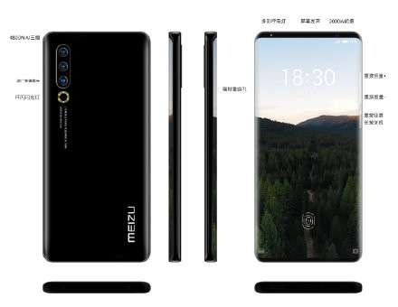 The bottom of the device holds the speaker grille and USB-C port, though there’s unfortunately no 3.5mm headphone jack in sight. Leaks claim the device has a 20MP front-facing selfie camera on top, and that it uses screen vibrations instead of an earpiece speaker. In addition, Meizu 17 a triple rear camera, with one 48MP unit and ring flash vertical arrangement.