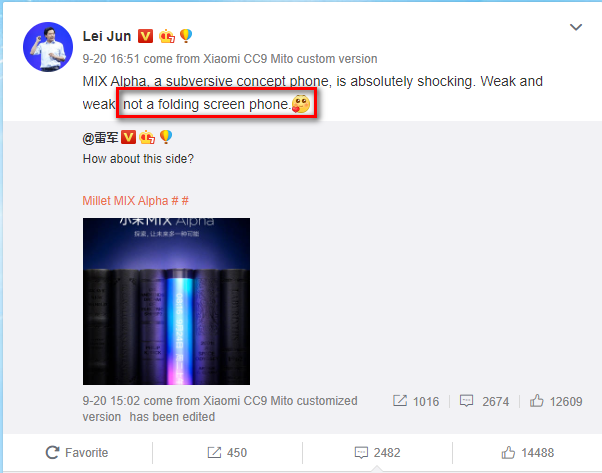 Xiaomi founder Lei Jun has gone to Weibo to clarify that the new device, unfortunately, isn’t the company’s folding phone, though he had more to add. According to him, the Mi MIX Alpha will feature a very subversive and shocking design. He doesn’t go into much further detail, but we can still make a few educated guesses.