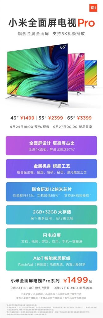 The pre-orders for the TVs in China will commence from 24th September (6 PM) and they will be available for purchase from the 27th of September. The company has not provided any details about their launch in other regions, however, that information might be revealed in the following weeks.