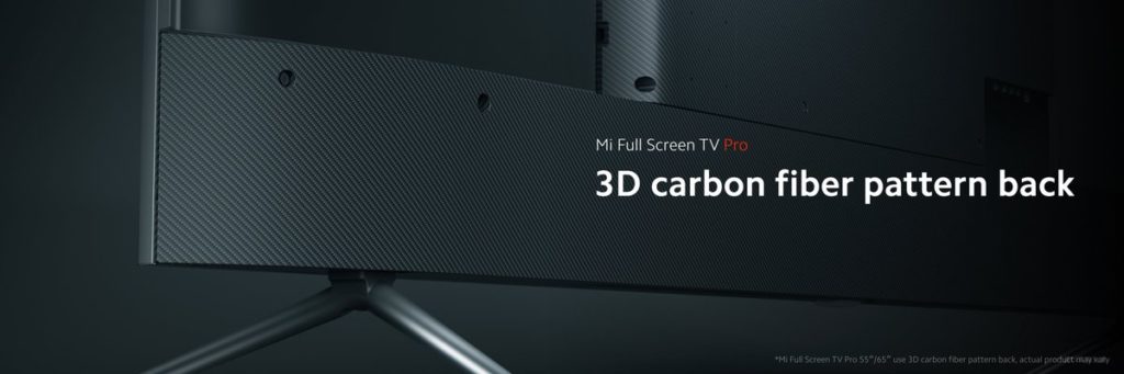 The middle frame of the Mi Tv Pro is made out of Aluminium alloy and they have a metal base which provides for a sturdy overall build. Furthermore, Xiaomi has paid special attention to their rear as well. Even though the rear panel is made out of plastic it resembles carbon fibre weaves which further adds to their appealing design.