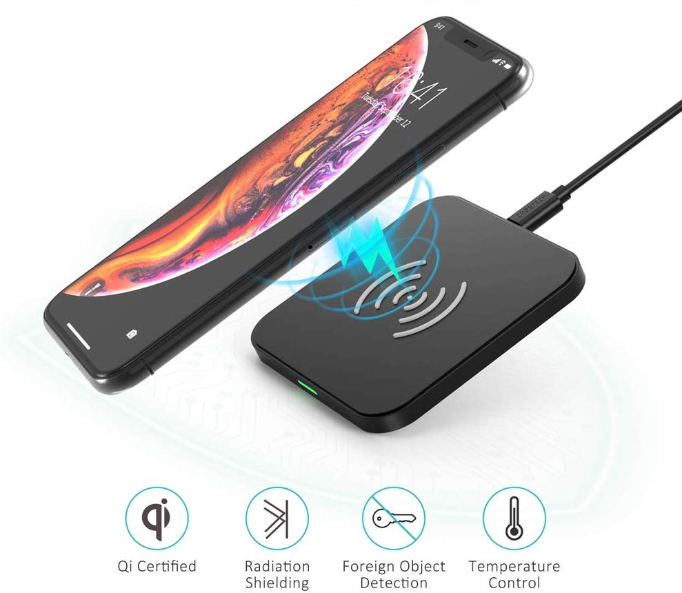 The charging pad on offer has an ultra-slim profile and sports anti-slip rubber to keep it always in place. It is compatible with all Qi-certified smartphones and other devices. The supported power is 7.5W for the iPhone series starting from iPhone 8 up to the newest models. Also, it can each 10W wireless charging for devices that support it like all Samsung flagships from Galaxy Note 8 up to the latest S10 and Note 10. You can get it at just $9.11 on Amazon using coupon IUVYMALR.