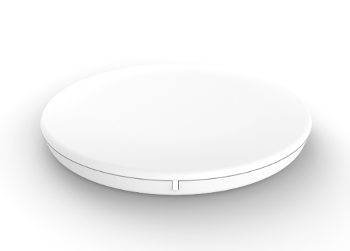 The charger has a circular design but it is hard to tell the material used for the top. The bottom does look like plastic though. The three colors are white, sky blue, and pink.