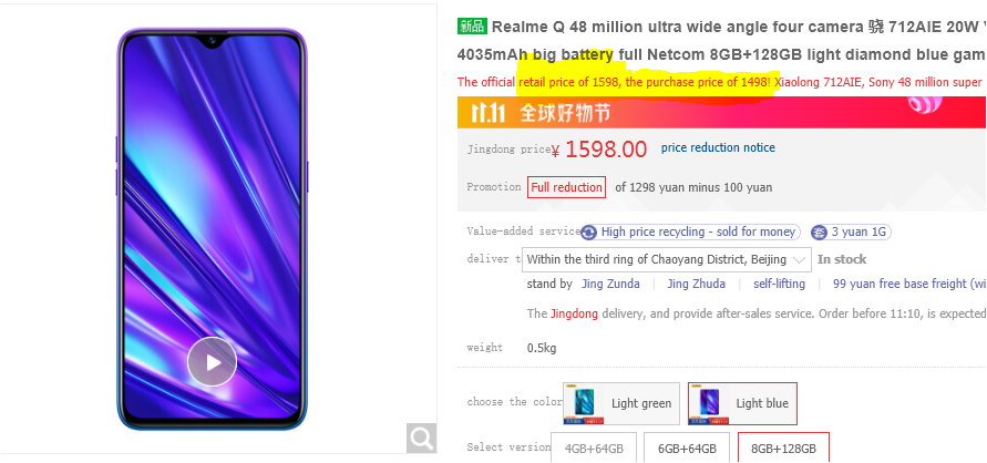 Realme Q was announced last month and the device was confirmed to have a similar design to the Realme 5 Pro but with some slight touch up features. The tech giant has now opened pre-sale for the Realme Q Diamond Blue variant. Both the 6GB+64GB and 8GB+128GB memory options are available with 100 yuan price cut across. Thus, the 8GB version is on offer for 1498 yuan (~$211) instead of 1598 yuan (~$225). while the 6GB version is up for 1198 yuan. The Realme Q is also available in a Drill Blue variant which isn’t getting the discount.