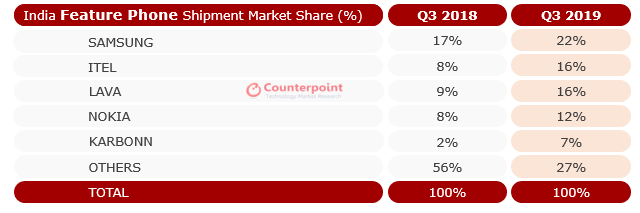 The same report also shed light on the sales figures of feature phones whose sales have gone down 37% on YoY comparison. The top five leaders in this segment are Samsung, itel, Lava, Nokia and Karbonn respectively.