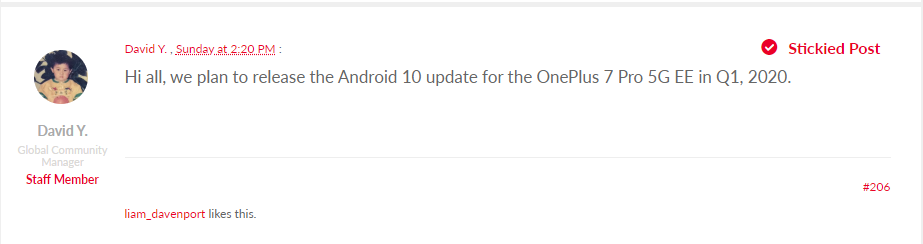 Well, the additional certification for carriers could be the reason for this delay. David specifically mentioned that the OnePlus 7 Pro 5G EE model will receive the update in the first quarter of next year.