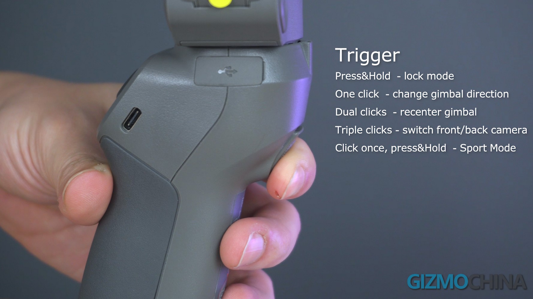 The DJI Osmo 3 has multiple features for meeting filmers’ different filming conditions, which did bring a lot of fun when we were working with it. However, it’s quite complicated when we try to figure out all the operations from distinguishing from the button M and the trigger on the back. For example, you could dual-click the button M to switch the phone directions, and triple-click it to get sleep mode. Meanwhile, the M is also used for switch between photo mode and video mode with a single click, and power options with a press and hold operation. And it’s just for the operation for the button M. For more shooting mode, you have to distinguish the operations of ‘press and hold’, ‘single click’, ‘dual-click’, ‘triple-click’, and ‘single click, then press and hold’. And the next time I used it; I have to make it clear again.