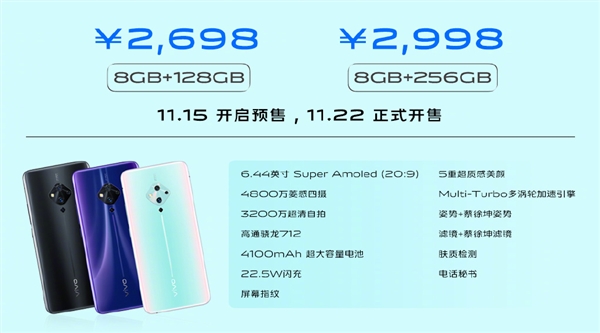 As for the pricing, the 8GB+128GB memory option has a recommended retail price of 2698 yuan ($384) while the top-end 8GB + 256GB variant is priced at 2998 yuan ($427). The phone will open for pre-orders November 15 but the official sales will commence on November 22.