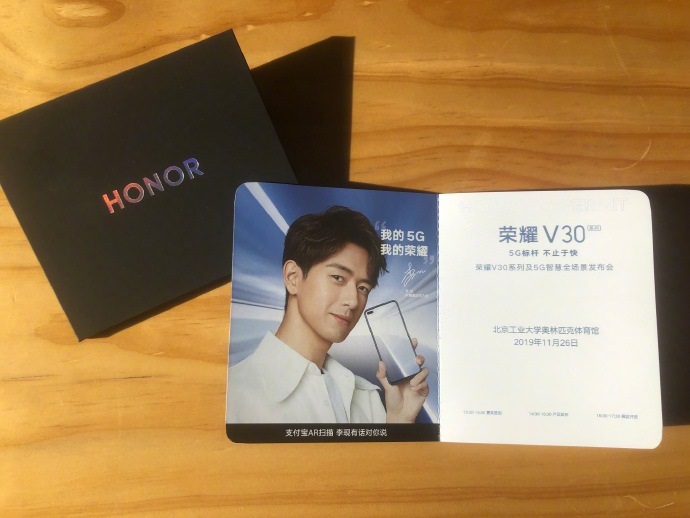 The invitations are designed to look similar to passports, since Honor are calling them 5G passports. On the inside, we’ve got all the relevant information regarding the event’s launch date and venue, as well as an image of an Honor ambassador. It’s a cute idea, though definitely not the most interesting we’ve seen from a Chinese company.
