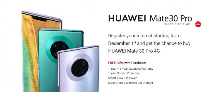 Huawei has confirmed via a teaser on its official UAE website that the Mate 30 Pro will be available for pre-order on December 1. The teaser also suggests the company will make an announcement on that day, possibly revealing the launch date. You can even register your email address to get notified when the pre-order opens on Sunday. The teaser also reveals the Mate 30 Pro purchase will come with additional perks which include an extended warranty, screen protection, smart view flip cover or SuperCharge wireless car charger.
