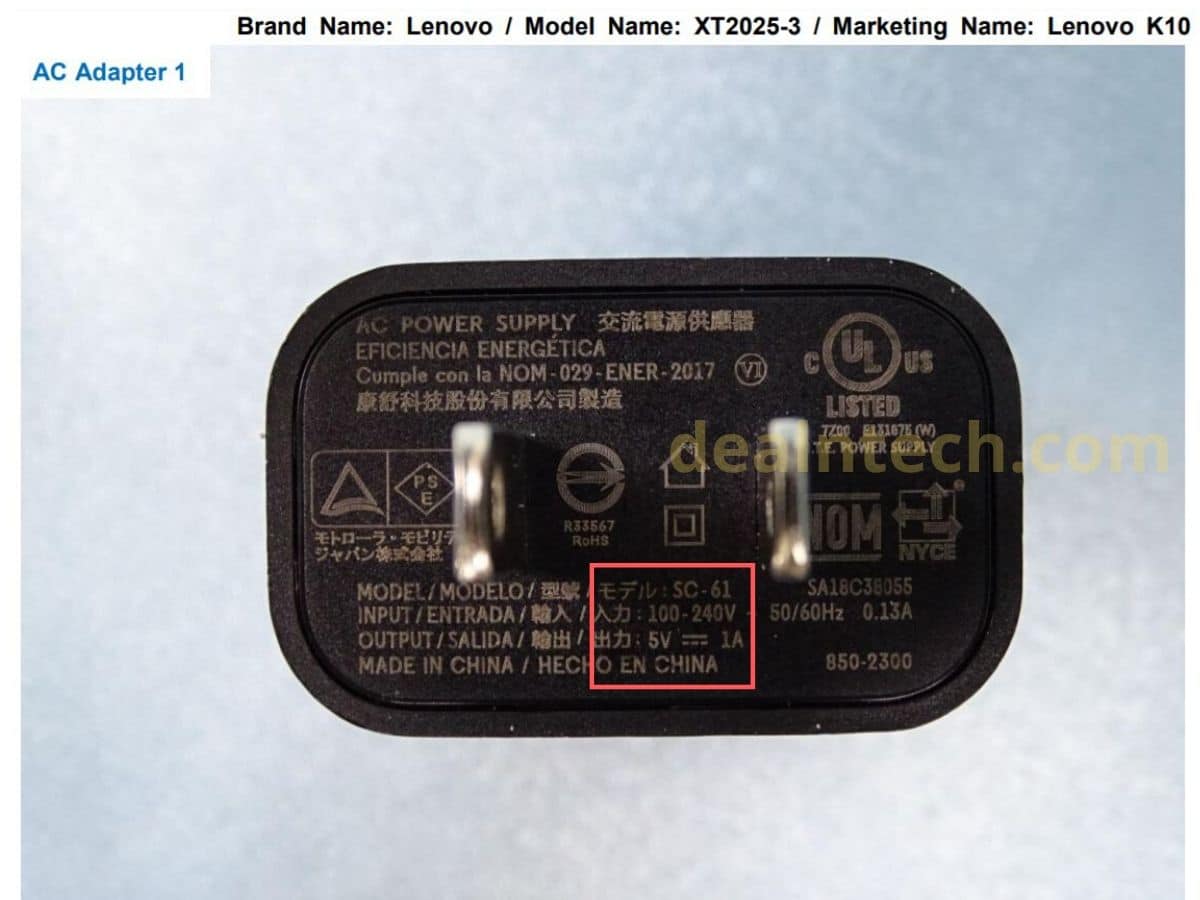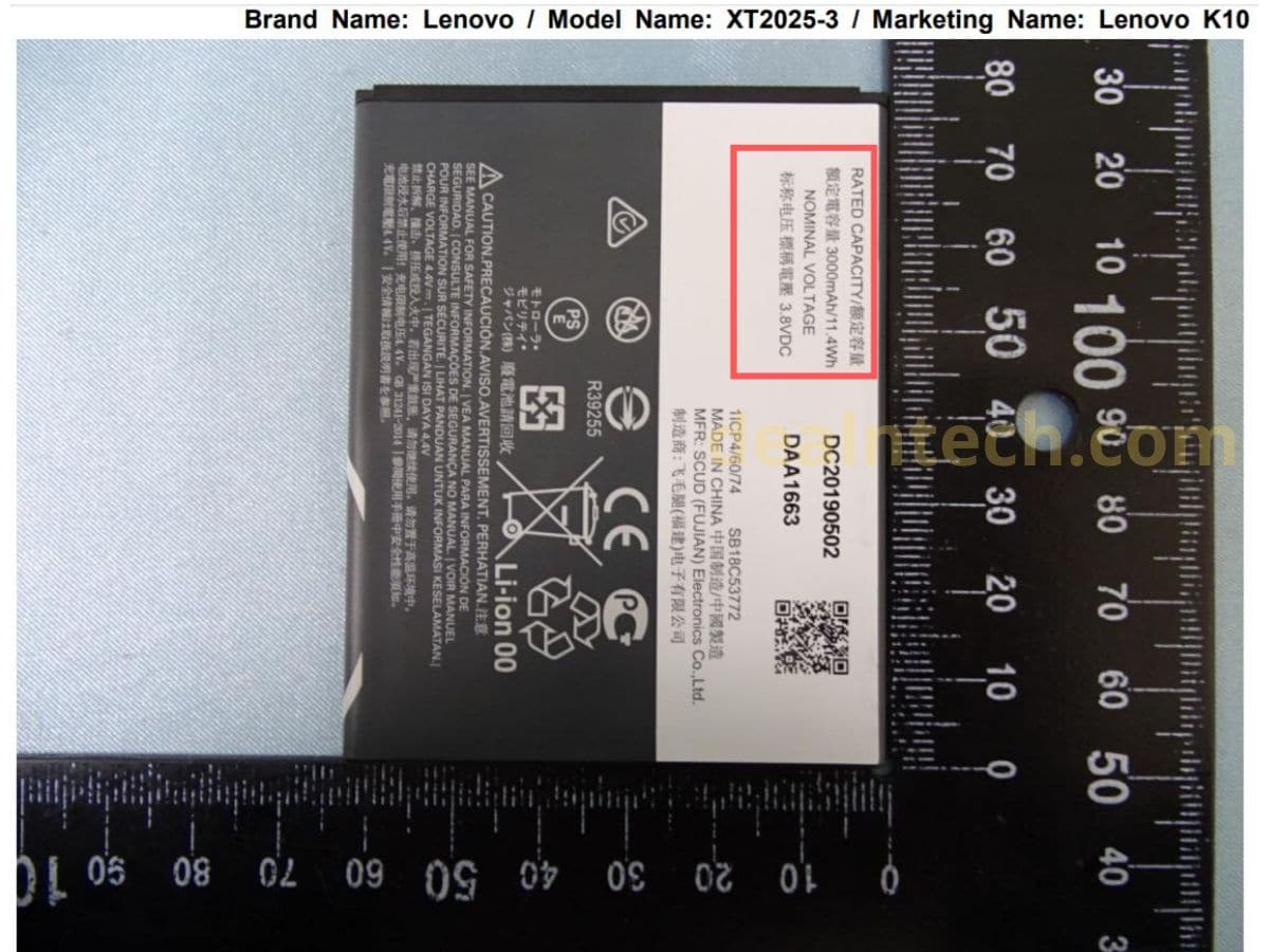 The Lenovo K10 has a removable 3000mAh battery. However, while the Moto E6 Plus supports 10W charging, the NCC documents show the phone will ship with a 5W charger.