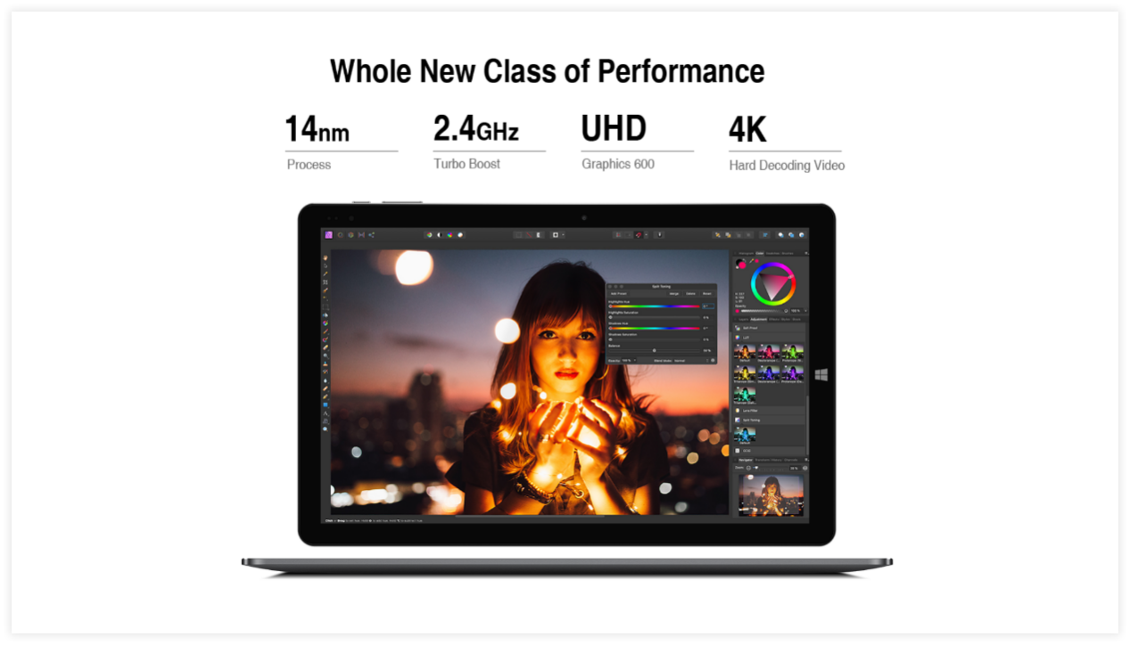 The Hi10 X comes equipped with the Intel N4100 CPU that is manufactured using the 14nm process and its highest frequency reaches up to 2.4GHz. Thanks to the new CPU and 9th Gen UHD Graphics 600 GPU, the device can be used in a variety of scenes for different purposes and it can decode 4K video smoothly.