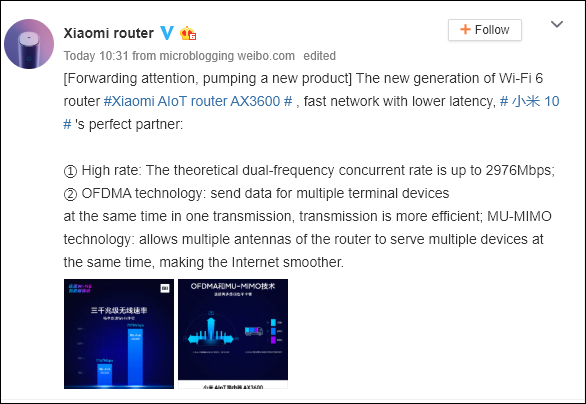 Xiaomi recently announced that it would unveil a new wireless router that uses the WiFi 6 protocol alongside the Mi 10 series. The company has now released more details of the new router via a Weibo post.