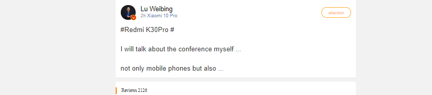 Earlier today (12th March 2020), Lu Weibing, the Vice President and General Manager of Xiaomi Group, revealed that the Redmi K30 Pro launch event will include more than just smartphones at the conference.
