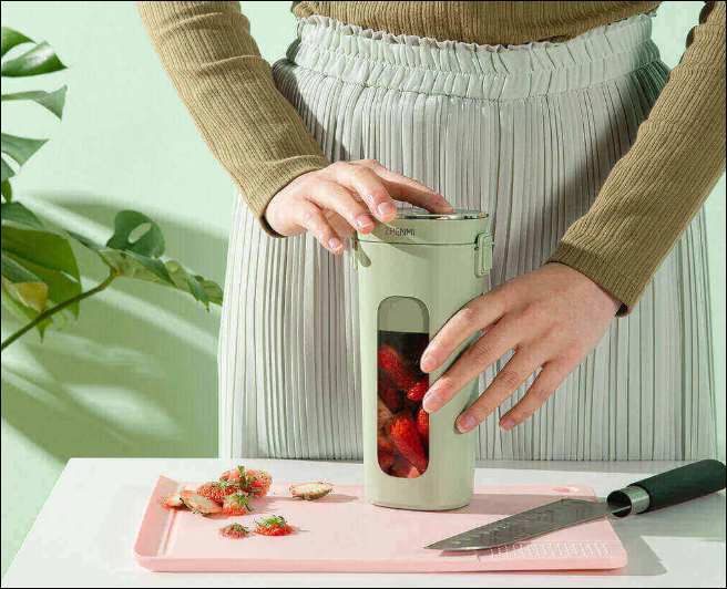 The Zhenmi Wireless Vacuum Portable Juicer uses an innovative oval cup body which not only guarantees visual beauty but also allows users to maintain a comfortable grip. It comes in Cherry Pink and Light Blue colours. For juicing, it features a 4-leaf stainless steel blade, combined with the eccentric spoiler technology which increases the whipped force by 35%. As a result, there is no need to shake the juicer while blending. It is touted as capable of even breaking ice cubes.