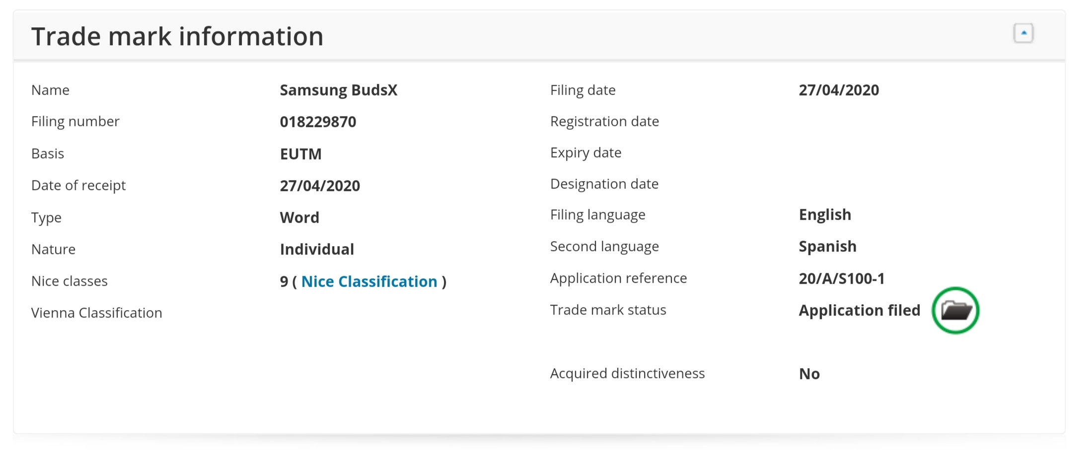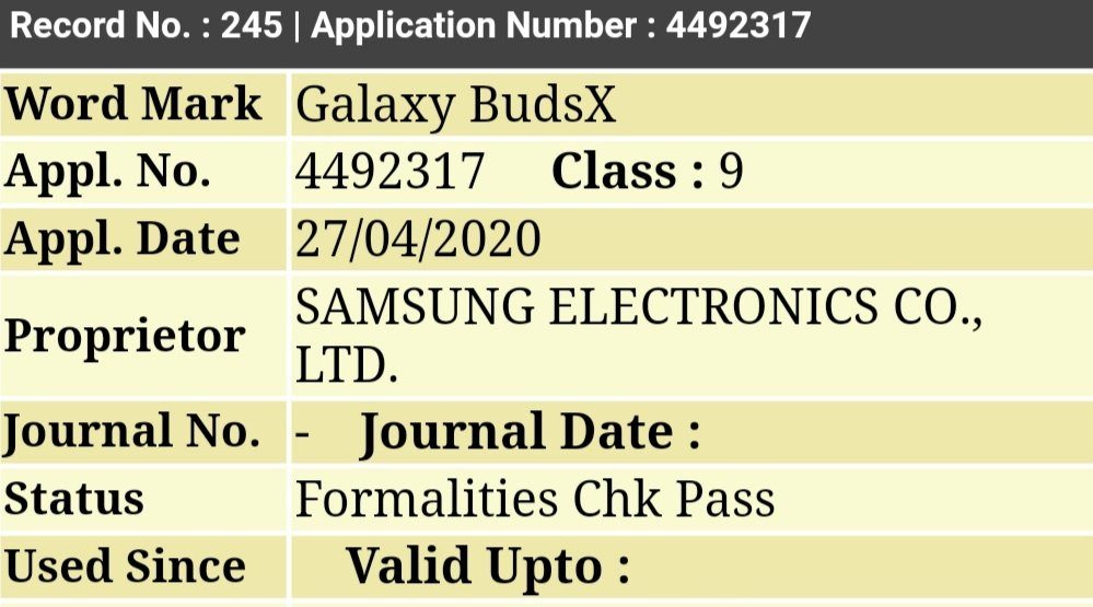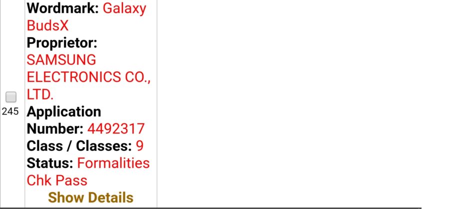 The Korean-giant has filed a trademark application in India for “Galaxy BudsX” and there are speculations it may be the official name of the kidney-bean shaped earbuds that leaked earlier this month. The trademark application was also filed in the UK and Europe too.