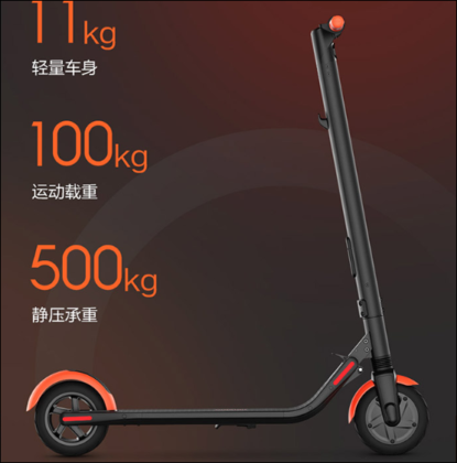 The e-scooter is manufactured using aviation-grade aluminium alloy. It is designed with an elegant black/orange paint job. The scooter weighs 11kg and can carry a maximum load of 100kg. The e-scooter also utilises two 8 inches non-pneumatic, explosion-proof hollow tires. The tires won’t result in a bumpy ride as there is a front shock absorber which can effectively reduce the riding bump. The Ninebot ES1L supports one-button folding and can easily to put in the trunk of the car or taken into an elevator.