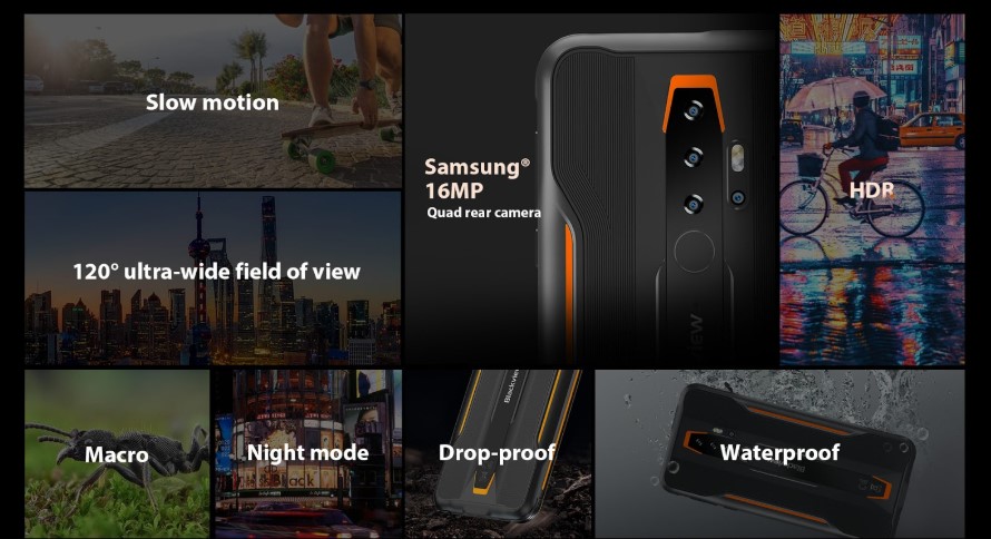 Blackview BV6300 Pro carries a quad-rear camera consisting of a 16-megapixel primary sensor, 8-megapixel ultra-wide lens, a 2-megapixel sensor and a 0.3-megapixel lens. The camera module is capable enough to capture detailed photos using the improvised software processing and larger pixel size. Moreover, you can easily take a 120° ultra-widefield view, macro shots, and night mode from the phone alone.