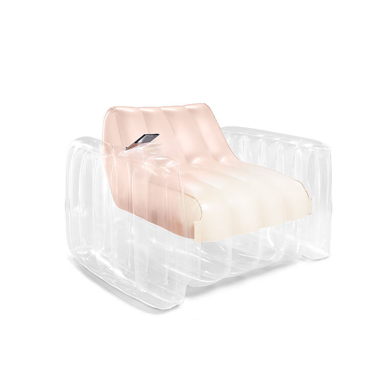 The product is manufactured by Minnidip and is known as Minnidip x Razr Ch(air). It looks like an inflatable blush gold sofa. The company says it will give users the “illusion of floating on (air).”
