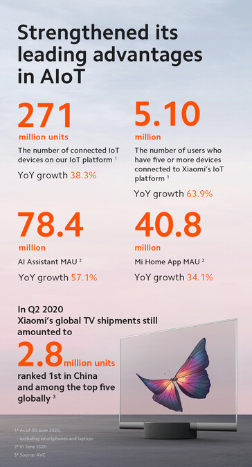 Of particular note is the massive jump in the number of monthly active users (MAU) for MIUI which increased from 279 million in June 2019 to a whopping 343 million persons in June 2020. The infographics also show that the number of Xiaomi devices that are connected to the company’s IoT platform reached 271 million. Mi Home app monthly active users peaked at 40.8 million, a growth of 34.1% YoY.