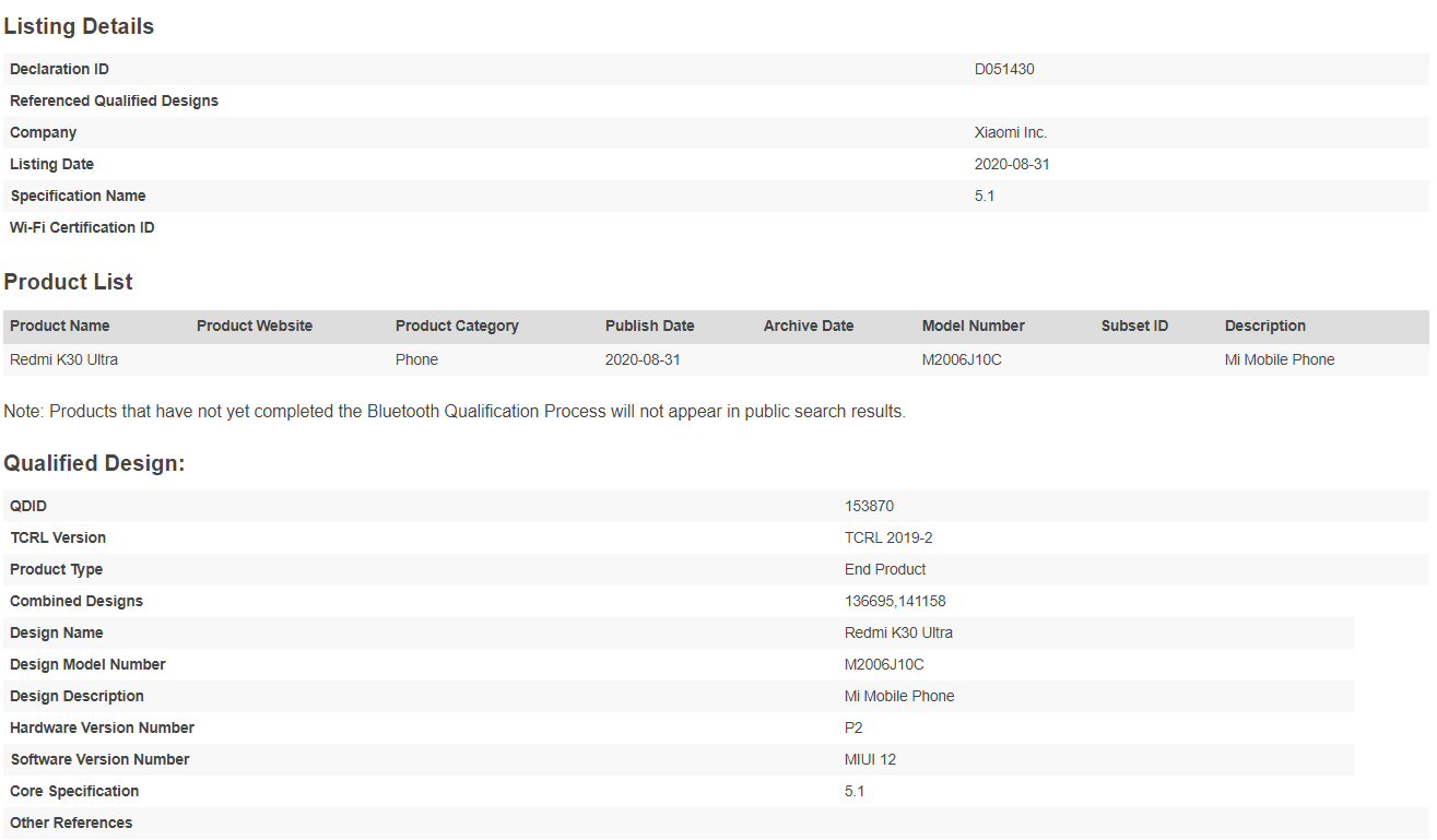 Earlier this month, Xiaomi announced the Xiaomi Mi 10 Ultra and Redmi K30 Ultra smartphones in China. Soon after the launch, a Xiaomi spokesperson said that Xiaomi currently has no plans to launch the Mi 10 Ultra and Redmi K30 Ultra outside China. Leakster Mukul Sharma has spotted a couple of Redmi phones including Redmi K30 Ultra that are currently available only in China in the list of Google supported devices. At the same time, the Redmi K30 Ultra has received approval from the Bluetooth SIG authority. The listings do not really reveal that they are heading to global markets, but there are slim chances that some of these devices may debut outside China.