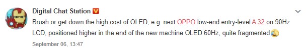 According to a tipster, OPPO A32 for China is the next entry-level phone featuring a 90Hz LCD panel. He also hinted at a high-end version of the device with a 60Hz OLED panel.