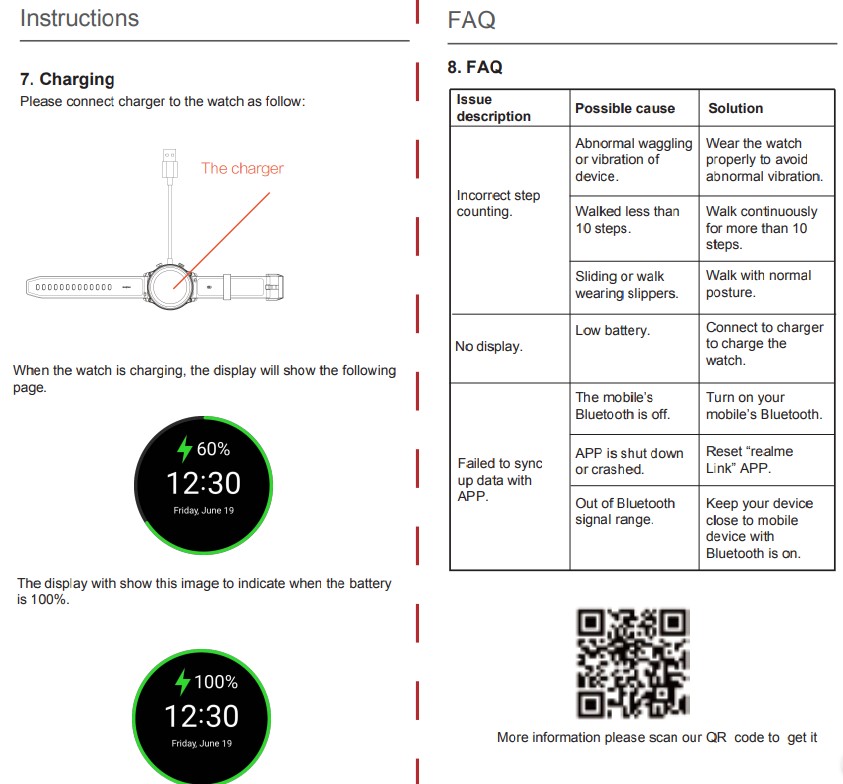 The watch will connect via Bluetooth Low Energy and will work with the realme Link app to sync data to your phone. The watch also has a built-in 420mAh battery but the battery life isn’t stated. The images show a magnetic charger that attaches to the underside of the watch to charge it.