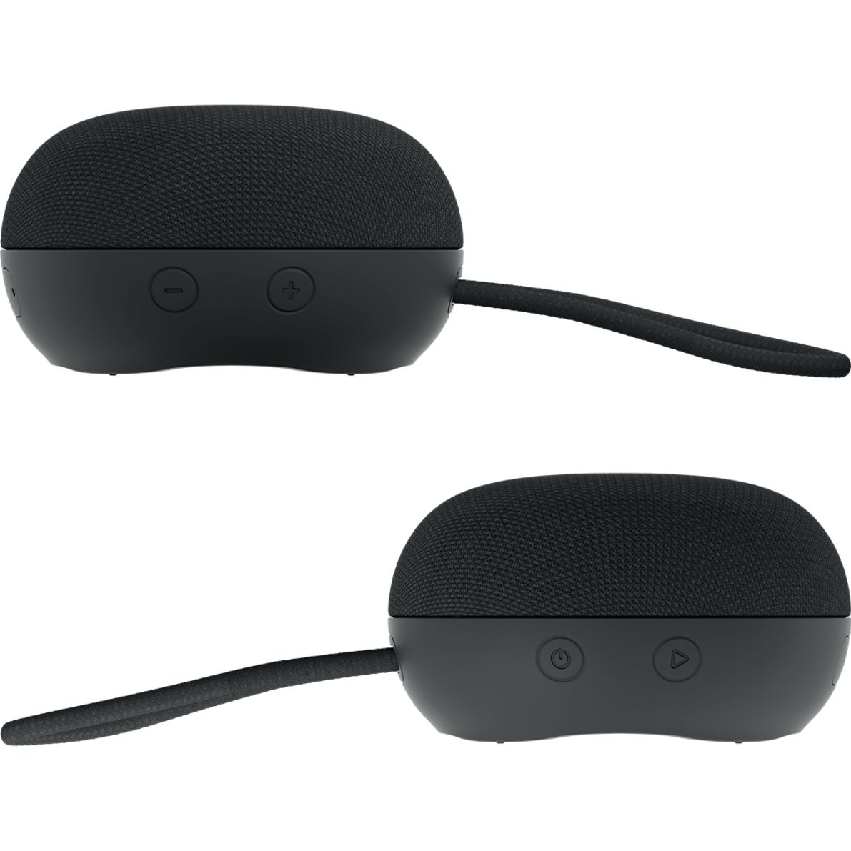 The speaker has a 43mm driver and connects via Bluetooth 5.0. You can even link two speakers together for stereo output. There is an 800mAh battery inside that provides up to 4 hours of playback and an integrated microphone allows you to use it to make calls.