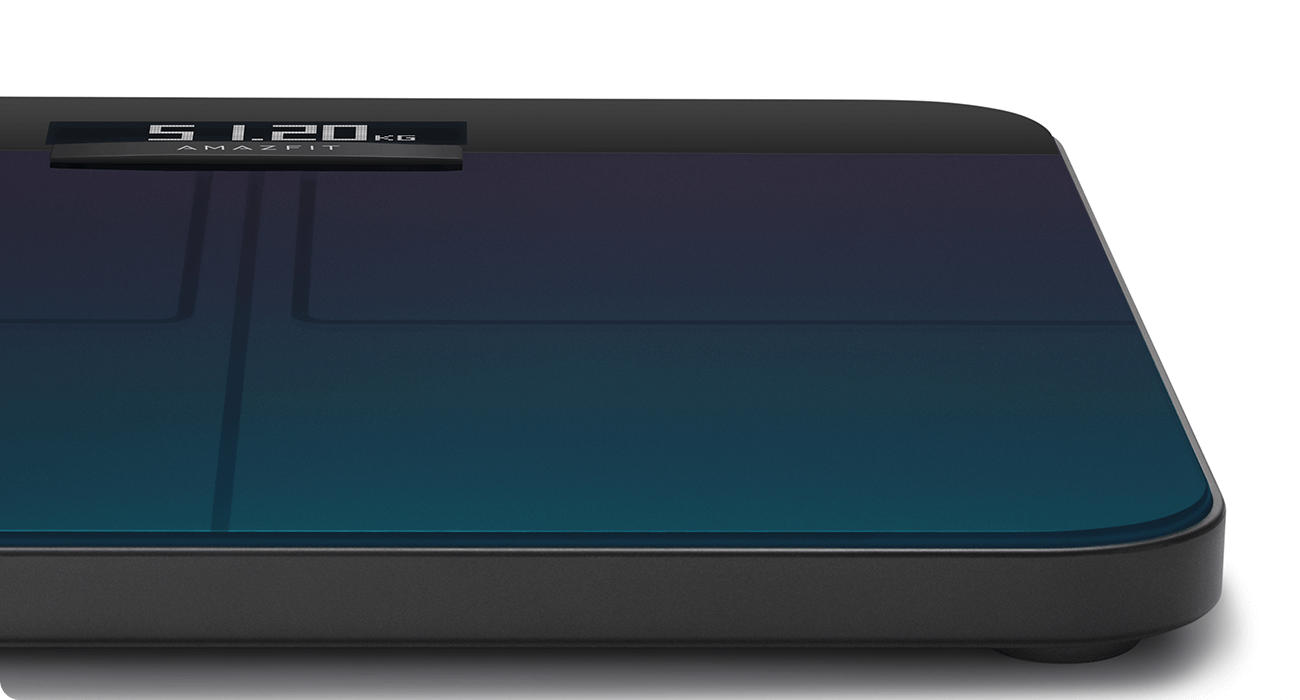 The tempered glass top of the Amazfit Smart Scale has an aurora gradient design that should make the scale stand out, though not jarringly, in your home regardless of where you put it. The ABS plastic frame is gray while the top part where the display sits is black. The LCD display is 3.4-inches and should be large enough for users to see the readings clearly.