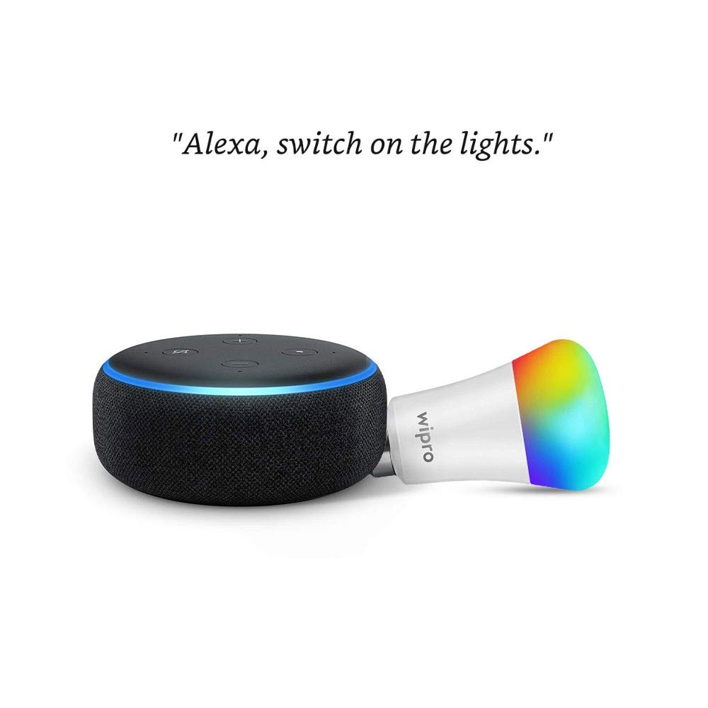 Echo Dot Grey + Syska 12W LED RGB color bundle is available at a discount price of Rs. 3326