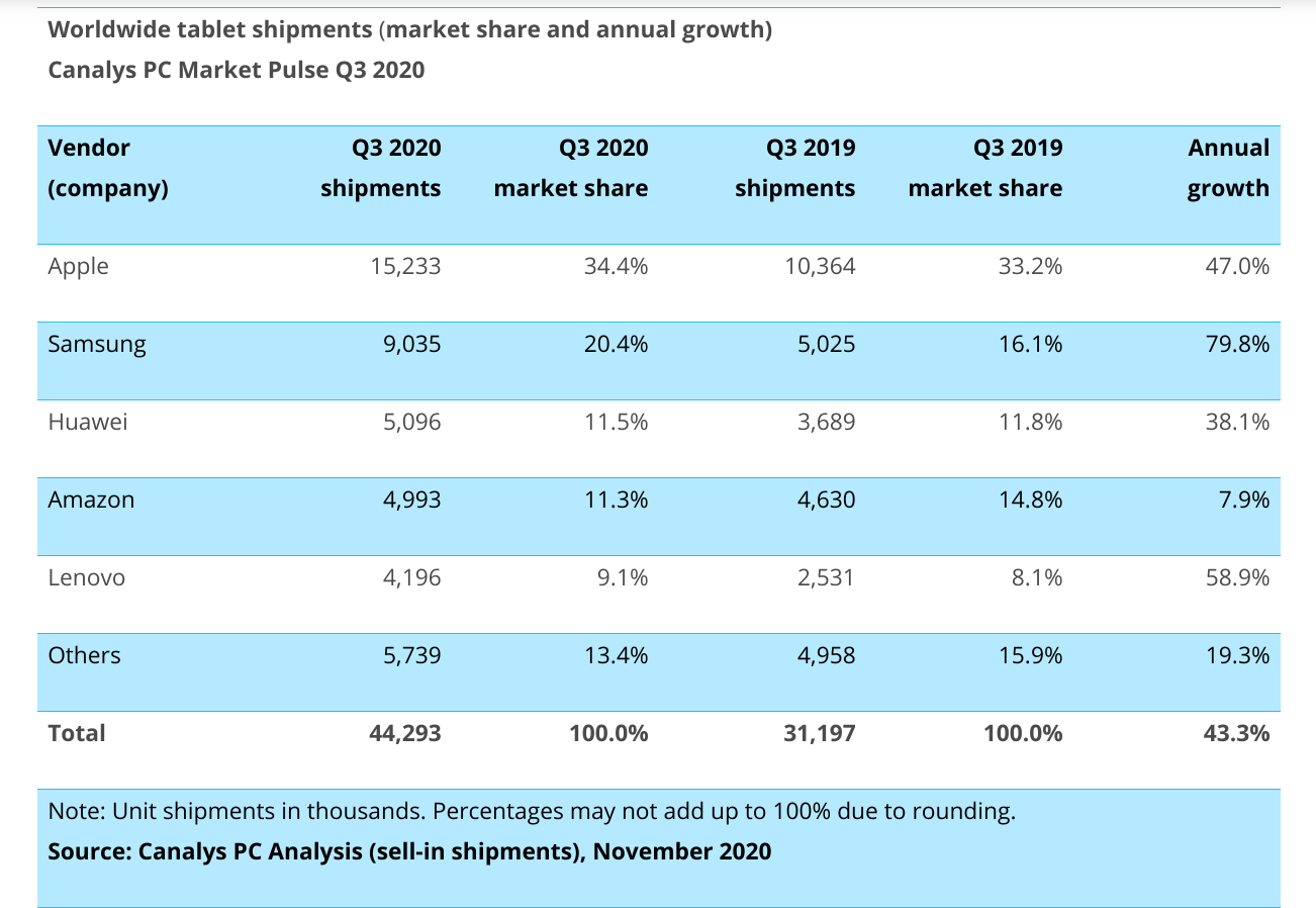 Also, it is worth noting that Q3 2020 was the only quarter other than Q2 2020 in which the tablet market grew since 2015. So we can say that the pandemic resurrected tablets from the dead after five years.
